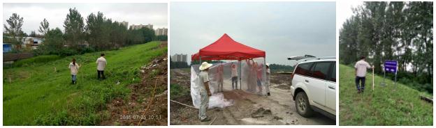 2016年7月3日,綠茵董事長(圖2)親臨江岸區(qū)朱家河堤與工人一起手把手搭建值班棚,并一起參與巡堤工作(圖3)。綠茵積極響應(yīng)街道安排,一天24小時安排人手輪流守堤、巡堤、護堤。圖1為綠茵員工杵棒在堤上來回走動,查看是否出現(xiàn)滲水潰口,并及時向上級匯報實時情況。